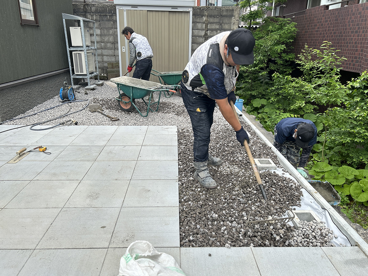外構工事は地面を掘削したり基礎を施工したりする工程があるため、地盤が凍っている状態では作業ができません。さらに、砕石などの資材を扱う業者も冬期間(12月〜3月頃まで)閉鎖している場合が多く、資材調達自体ができない時期があります。