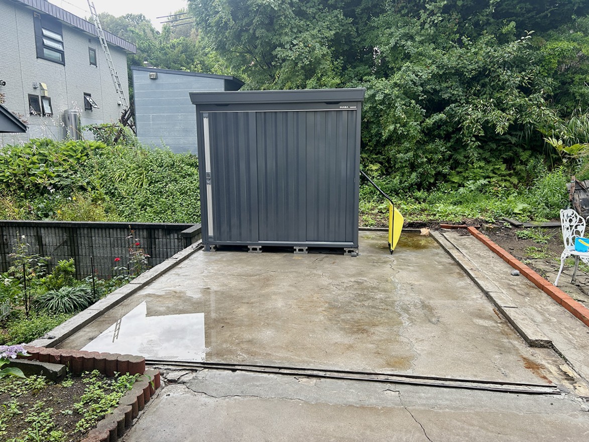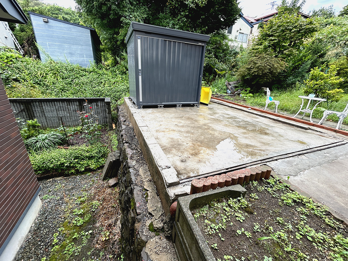 コンクリートのスペースには隣家との高低差があり、安全面が少し心配な場所でした。