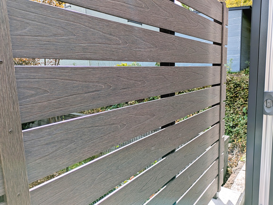 天然木のような質感を再現したタカショー「モクプラボードリアル」は、耐久性に優れた樹脂素材でお手入れも簡単。