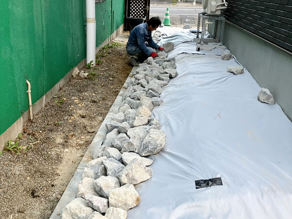 暗渠構造(地中に埋設した排水管)を設け、しっかりと仕上げました。